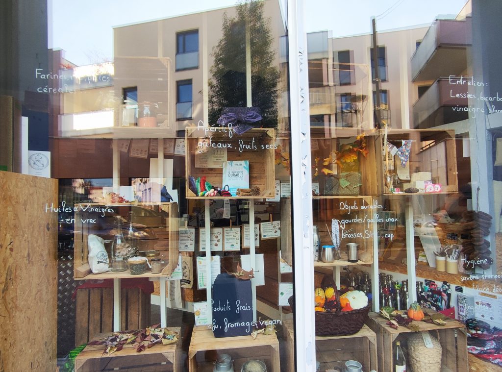 - Beevrac – Une épicerie zéro déchet engagée, créative et conviviale, avec Marion et Claire, les spécialistes du VRAC. Elles font un travail remarquable pour sensibiliser le quartier et dénicher de bons produits auprès de petits producteurs locaux. Des paniers de fruits et légumes sont proposés chaque semaine. C’est là que j’ai proposé mon premier atelier d’écriture nomade à Cronenbourg !
